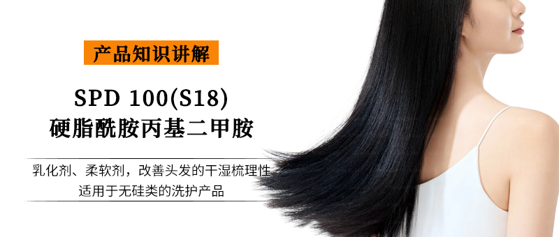 SPD 100 属于乳化剂和柔软剂,在微酸性时能使头发表面形成光亮柔软的保护膜,能改善头发的干湿梳理性,适用于无硅类的洗护产品中。