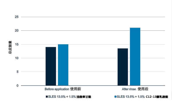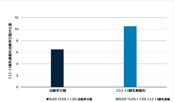 13.5%加量的 SLES 和 1.5%加量的 C12-13 醇乳酸酯 或油酸单甘酯